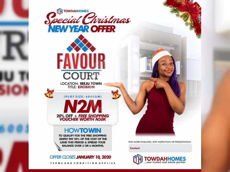 Favour Court is situated in a serene, classy, unique, future urban area which is going to house the Lagos Smart City Scheme. The area attracts massive amount of tourism as it is endowed with beautiful lagoon by the left and gorgeous ocean fronts by the right.